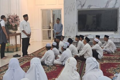 Stabat – H. Syah Afandin menyambut kunjungan 100 santri dari Pondok Pesantren Ulumul Quran di Rumah Dinas Bupati Langkat, Rabu (25/2/2026). Kegiatan tersebut dirangkaikan dengan pelaksanaan sholat Isy...