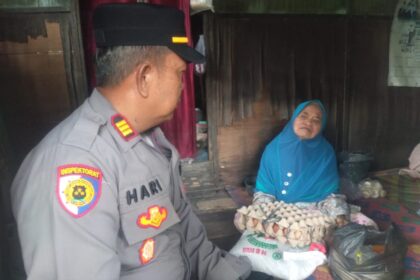 Langkat – Kapolsek Hinai, AKP Hari Mulyadi, melaksanakan kegiatan sambang kamtibmas sekaligus penyerahan bantuan sembako kepada warga kurang mampu di Dusun VIII, Desa Batu Melenggang, Kecamatan ...