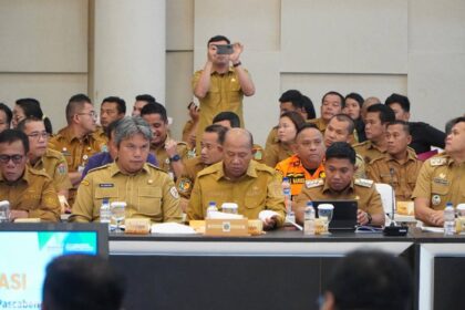 Medan – Bupati Langkat H. Syah Afandin, SH, mengikuti Rapat Koordinasi (Rakor) Percepatan Rehabilitasi dan Rekonstruksi Pascabencana Provinsi Sumatera Utara yang dipimpin langsung oleh Menteri Dalam N...