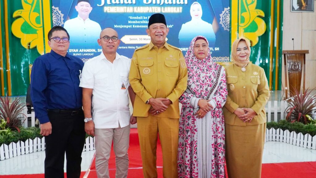 Langkat – Bupati Langkat H. Syah Afandin, SH menghadiri sekaligus memimpin kegiatan Halal Bihalal Pemerintah Kabupaten Langkat pasca Hari Raya Idul Fitri 1447 Hijriah yang berlangsung di Jentera Malay, Rumah Dinas Bupati Langkat, Senin (30/3/2026).