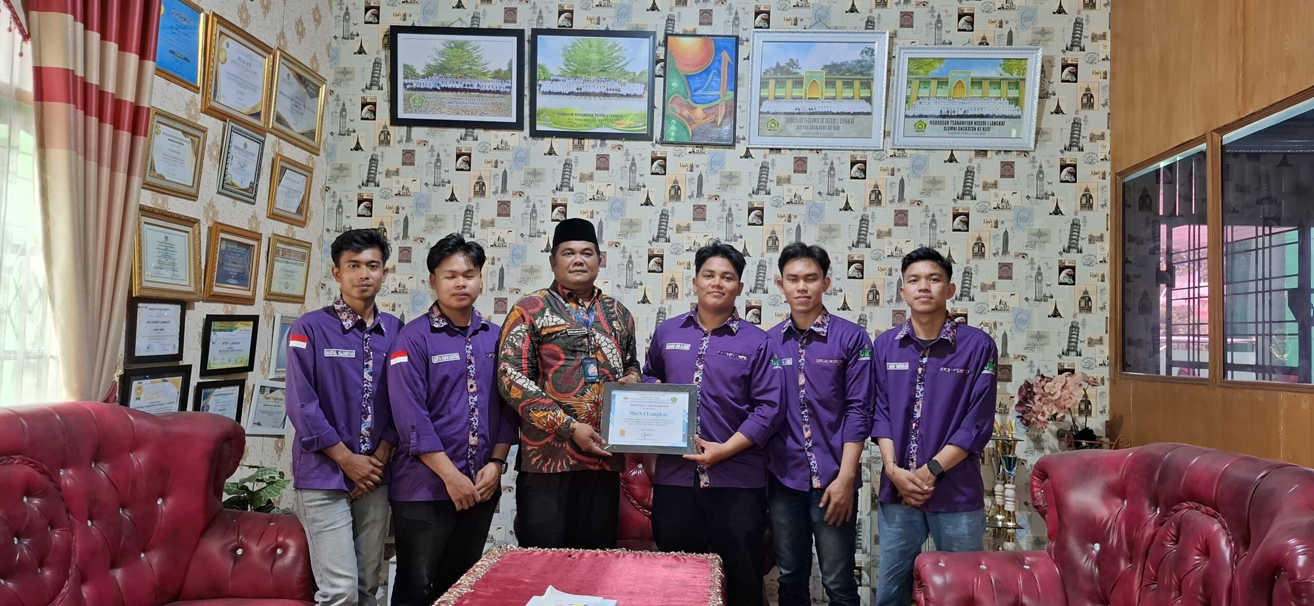Setelah sesi edukasi berakhir, rombongan mahasiswa IKM UINSU diterima di ruang Kepala Sekolah untuk menyerahkan apresiasi dan piagam penghargaan atas dukungan penuh madrasah terhadap program pengabdian.