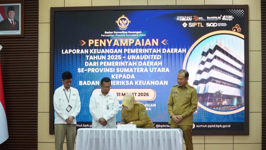 Medan – Pemerintah Kabupaten Langkat kembali menegaskan komitmennya dalam mewujudkan tata kelola keuangan daerah yang transparan dan akuntabel melalui penyerahan Laporan Keuangan Pemerintah Daerah (LKPD) Tahun Anggaran 2025 kepada Badan Pemeriksa Keuangan (BPK) Perwakilan Provinsi Sumatera Utara, di Medan, Selasa (31/03/2026).