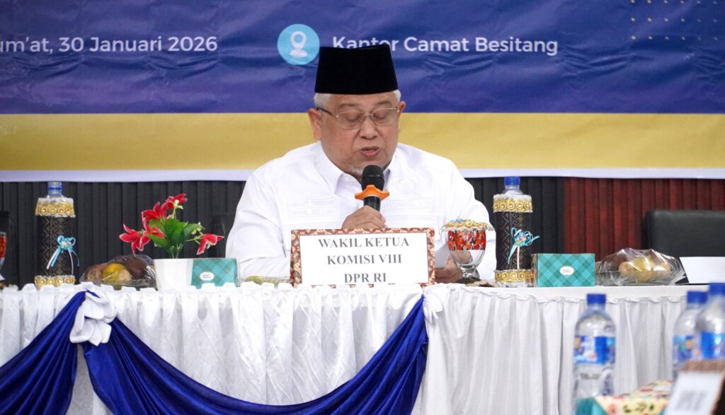 Bupati Langkat H. Syah Afandin, SH menerima langsung kunjungan kerja Komisi VIII DPR RI dalam rangka pelaksanaan fungsi pengawasan pascabencana banjir, yang dipusatkan di Kantor Camat Besitang, Jumat (30/1/2026). Kecamatan Besitang diketahui menjadi salah satu wilayah terdampak paling parah dari banjir yang melanda 16 kecamatan di Kabupaten Langkat.